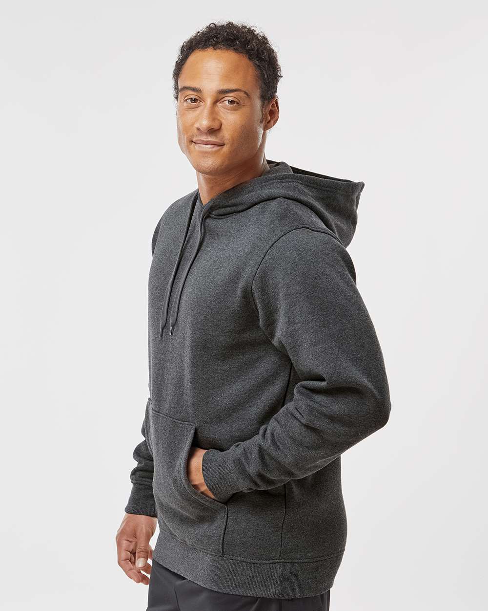 9 oz./yd_, 60/40 cotton/polyester athletic fleece Jersey lined hood Drawcord in hood Set-in sleeves Pouch pocket Rib-knit cuffs and bottom band Tear...