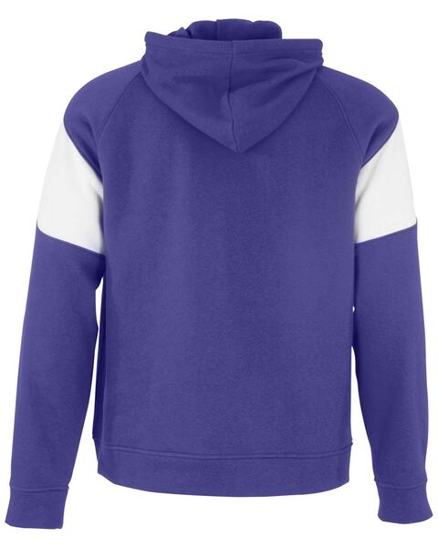 9 oz./yd_, 60/40 cotton/polyester Hood with flat braid drawcord Pouch pocket Raglan sleeves Ribbed-knit cuffs and waistband Woven label