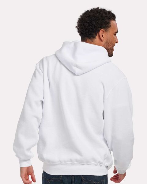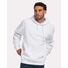 7 oz./yd_, 50/50 cotton/polyester 2-ply hood with self lining Folded rib cuffs and bottom opening Front pocket Woven loop label