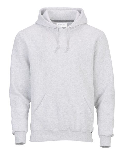 7 oz./yd_, 50/50 cotton/polyester 2-ply hood with self lining Folded rib cuffs and bottom opening Front pocket Woven loop label