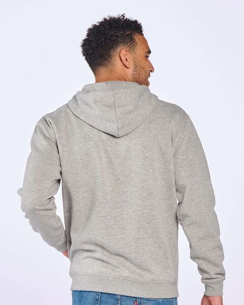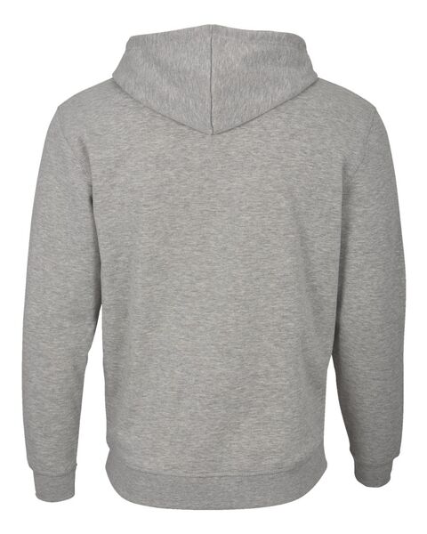 7 oz./yd_, 50/50 cotton/polyester 2-ply hood with self lining Folded rib cuffs and bottom opening Front pocket Woven loop label