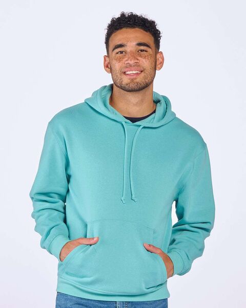 7 oz./yd_, 50/50 cotton/polyester 2-ply hood with self lining Folded rib cuffs and bottom opening Front pocket Woven loop label