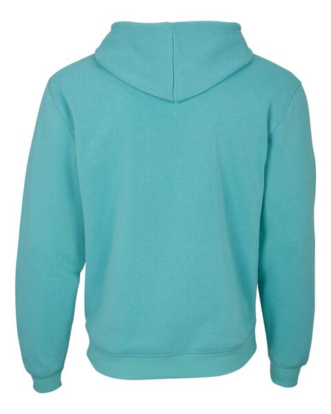 7 oz./yd_, 50/50 cotton/polyester 2-ply hood with self lining Folded rib cuffs and bottom opening Front pocket Woven loop label
