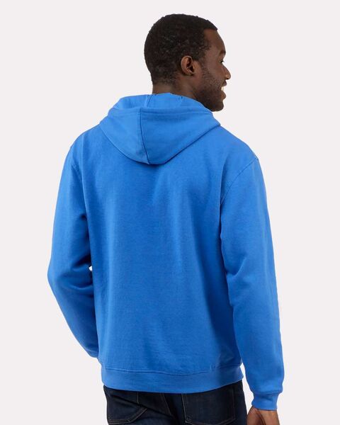 7 oz./yd_, 50/50 cotton/polyester 2-ply hood with self lining Folded rib cuffs and bottom opening Front pocket Woven loop label