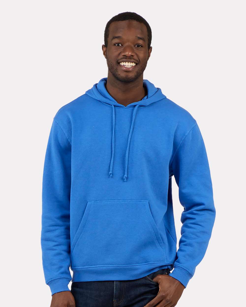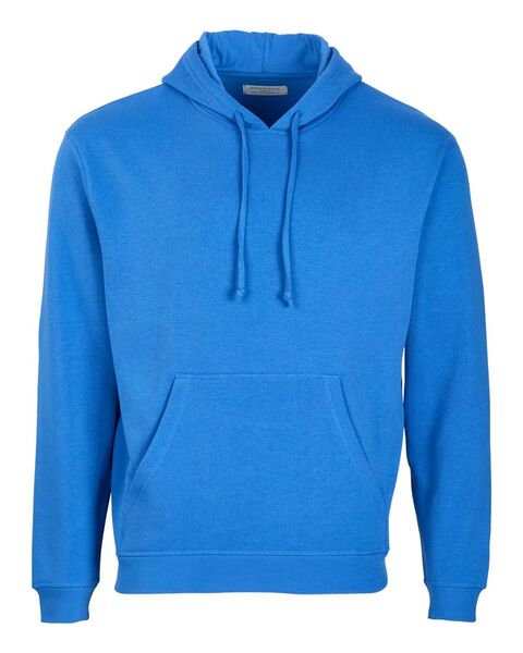 7 oz./yd_, 50/50 cotton/polyester 2-ply hood with self lining Folded rib cuffs and bottom opening Front pocket Woven loop label
