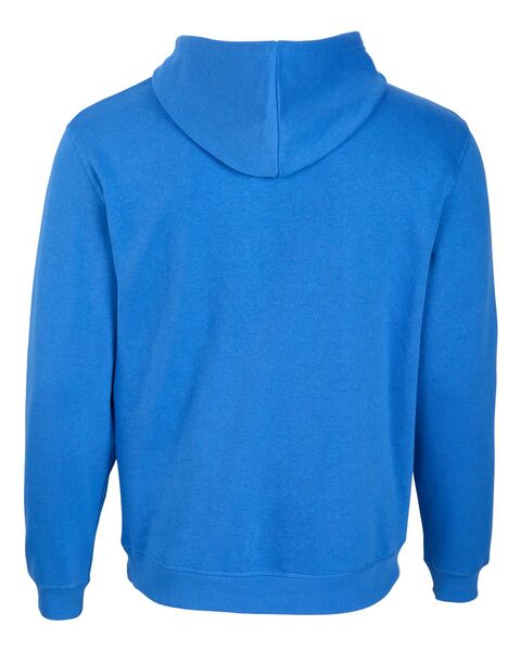 7 oz./yd_, 50/50 cotton/polyester 2-ply hood with self lining Folded rib cuffs and bottom opening Front pocket Woven loop label