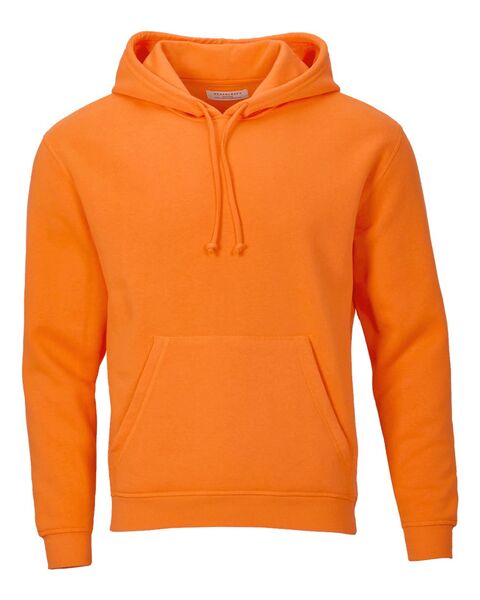 7 oz./yd_, 50/50 cotton/polyester 2-ply hood with self lining Folded rib cuffs and bottom opening Front pocket Woven loop label