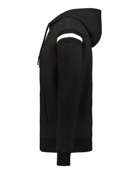 9 oz  /yd_,  51/45/4 polyester/cotton/spandex Self-fabric lined hood with silicone dipped tip drawcord Set-in sleeves Front pouch pocket...