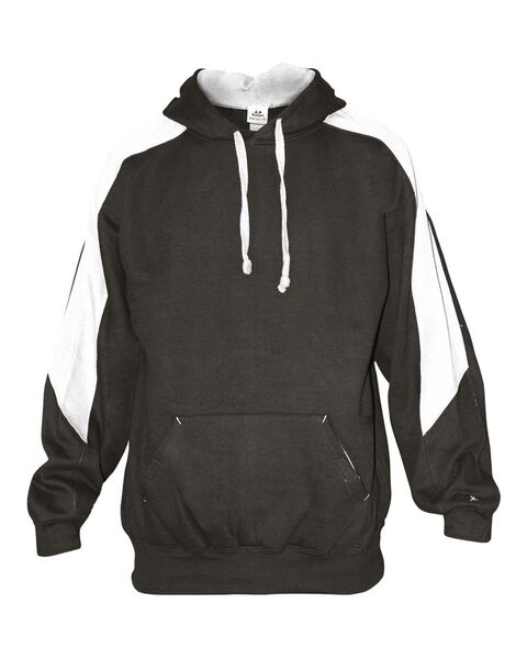9.5 oz./yd_, 60/40 ring-spun cotton/polyester Two-ply hood with contrast liner & flat drawcord Contrast shoulder & top sleeve inserts Pouch...