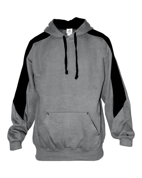 9.5 oz./yd_, 60/40 ring-spun cotton/polyester Two-ply hood with contrast liner & flat drawcord Contrast shoulder & top sleeve inserts Pouch...