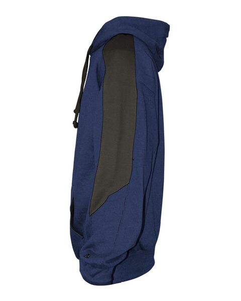 9.5 oz./yd_, 60/40 ring-spun cotton/polyester Two-ply hood with contrast liner & flat drawcord Contrast shoulder & top sleeve inserts Pouch...
