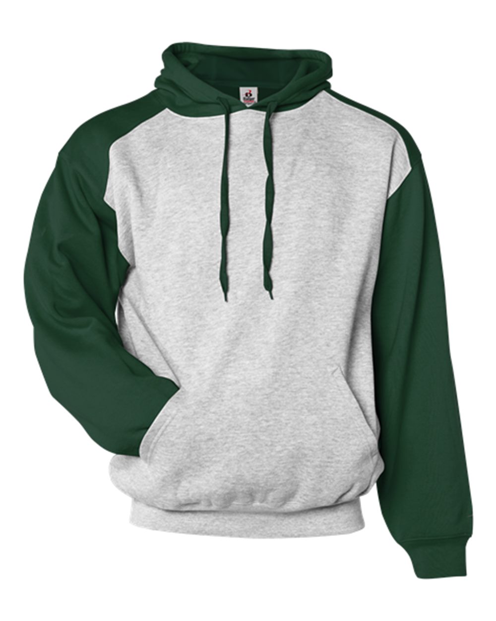 9.5 oz./yd_, 60/40 ring-spun cotton/polyester Two-ply hood with wide and flat tipped drawcord Contrast hood, drawcord, sport shoulder and sleeves...