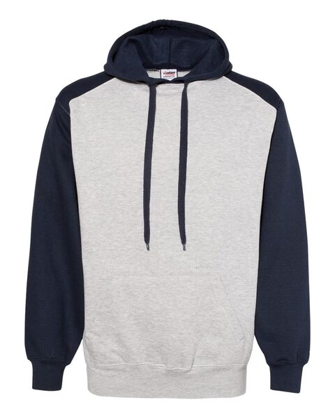 9.5 oz./yd_, 60/40 ring-spun cotton/polyester Two-ply hood with wide and flat tipped drawcord Contrast hood, drawcord, sport shoulder and sleeves...