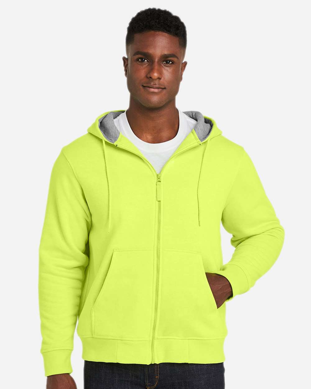 - Dyed-to-match rib trim at cuffs and hem