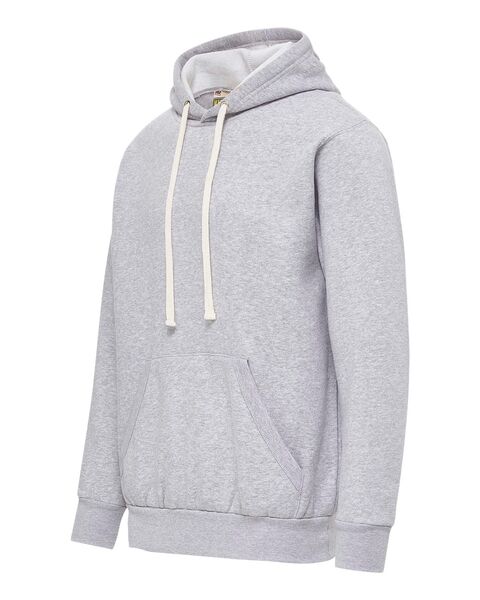 9 oz./yd_, 65/35 cotton/polyester fleece Limited shrinkage 1x1 rib knit cuffs, waistband & pouch pocket trim Unlined hood with contrast drawcord...