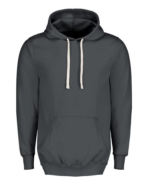 9 oz./yd_, 65/35 cotton/polyester fleece Limited shrinkage 1x1 rib knit cuffs, waistband & pouch pocket trim Unlined hood with contrast drawcord...