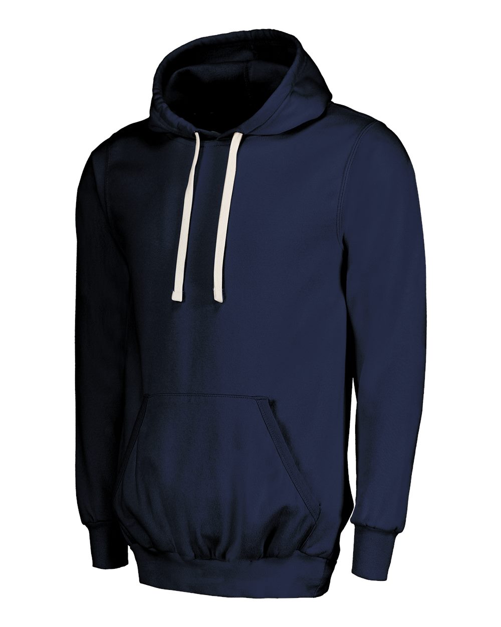 9 oz./yd_, 65/35 cotton/polyester fleece Limited shrinkage 1x1 rib knit cuffs, waistband & pouch pocket trim Unlined hood with contrast drawcord...