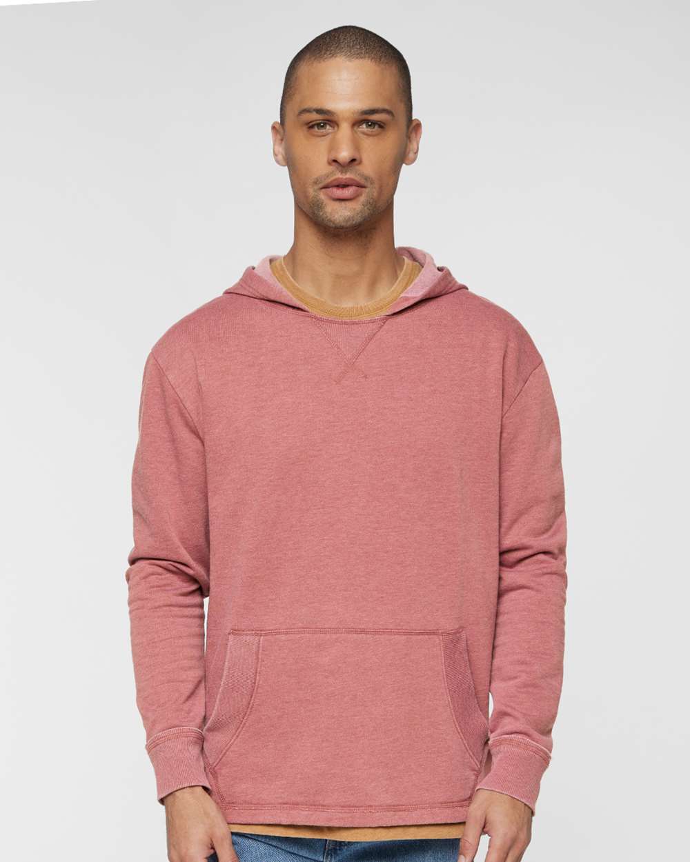 6.5 oz./yd_, 50/50 polyester/cotton Two-end fleece Two-piece hood Ribbed V-notch Flatlocked side seams Fashion ribbed pocket detail...