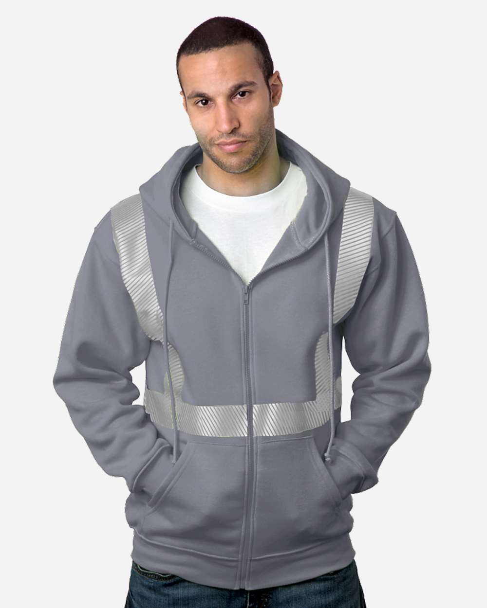 USA-Made Hi-Visibility Full-Zip Hooded Sweatshirt - Segmented Tape