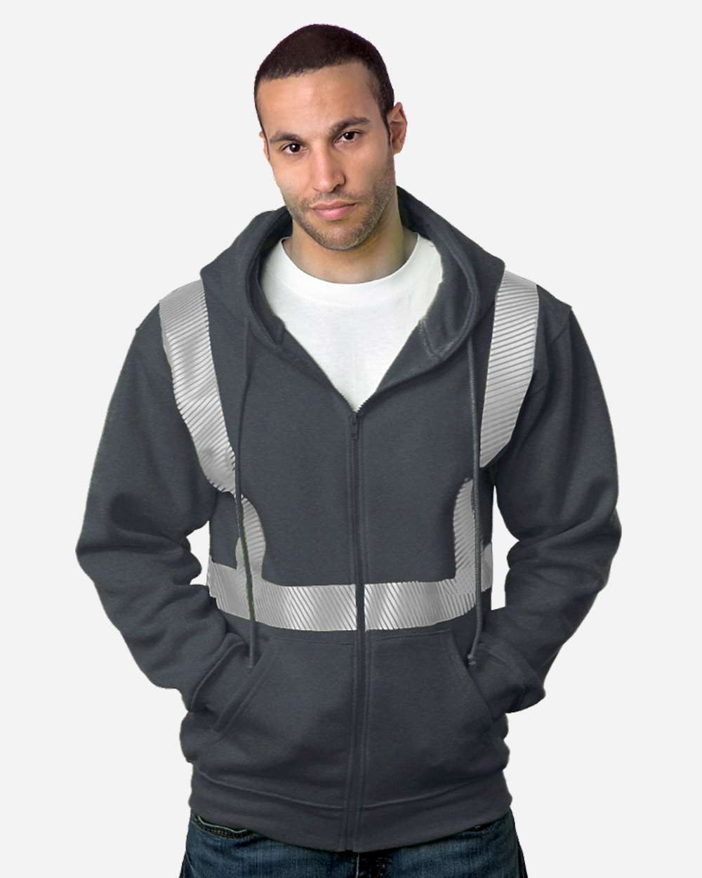 USA-Made Hi-Visibility Full-Zip Hooded Sweatshirt - Segmented Tape