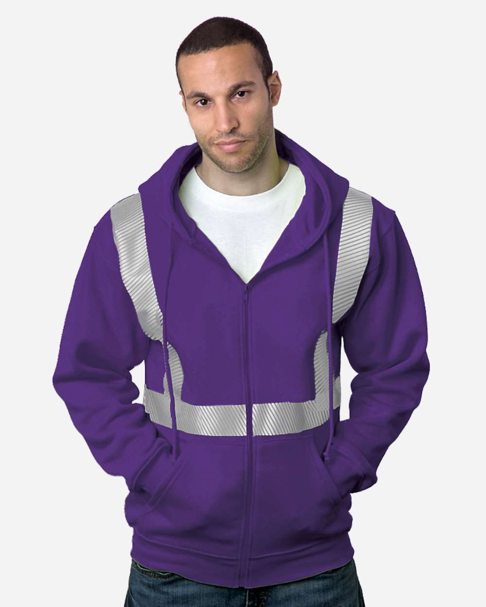 USA-Made Hi-Visibility Full-Zip Hooded Sweatshirt - Segmented Tape