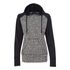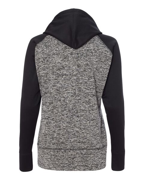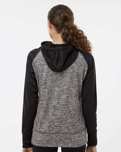 - Charcoal fleck body with contrast-color solid hood, drawcord and sleeves