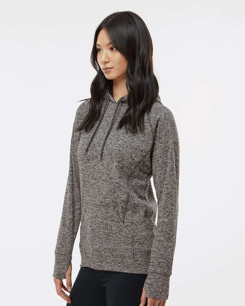 7 oz./yd_, 100% spun polyester fleck fleece Unique laced drawcord construction Contrast-color hood lining and drawcord Pouch pocket Raglan sleeves...