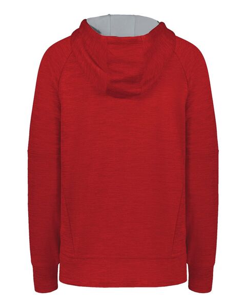 6.8 oz./yd_, 100% polyester mŽlange fleece Three-piece hood with color-contrast lining and drawcord Pouch pocket with internal mesh pocket Raglan...