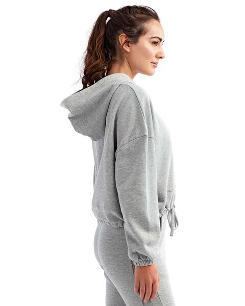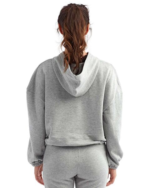 8 oz./yd_., 60/40 recycled polyester Heather Grey: 90/10 cotton/viscose Cropped, oversized fit Double-paneled hood Drawcord fastening to waist Tear...