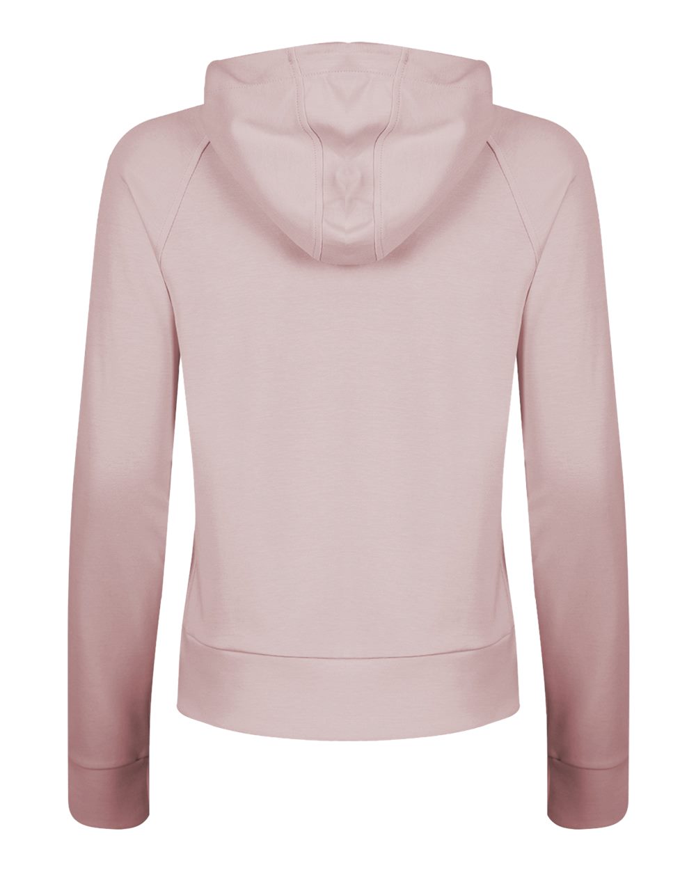 7.23 oz/yd_., 245 GSM 46/46/8 lyocell/cotton/polyester Full stretch Toggles on cowl neck Front zipper pockets Woven label left hip