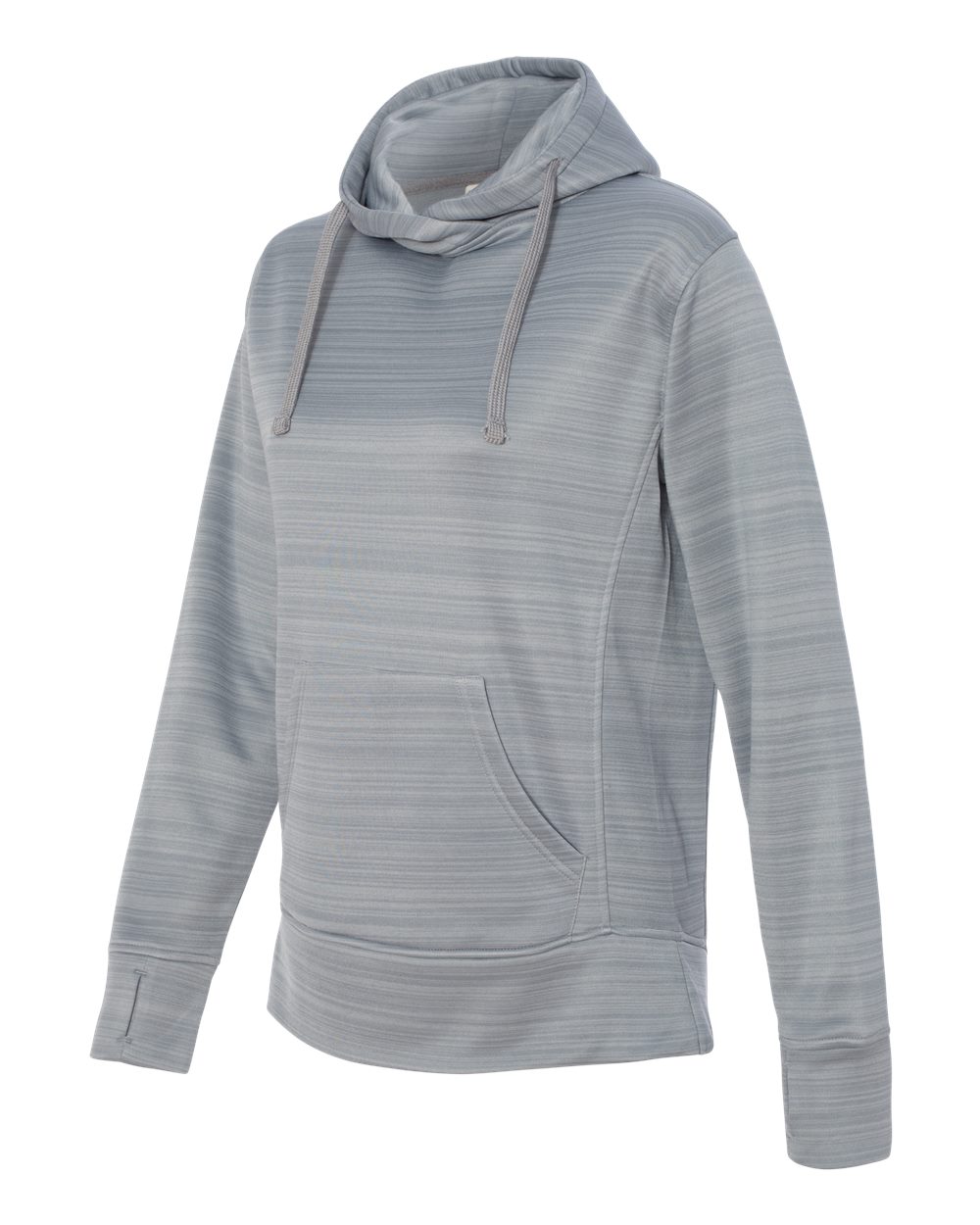 7.5 oz./yd_, 100% polyester fleece Set-in sleeves Scuba neckline with lapover hood construction Pouch pocket Thumbholes on cuffs Extended back hem