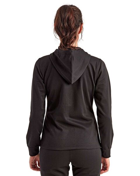 8 oz./yd_., 100% recycled polyester Wicking fabric technology Feminine fit Double-panel hood Full-zip style Front zip pockets Tear away label...