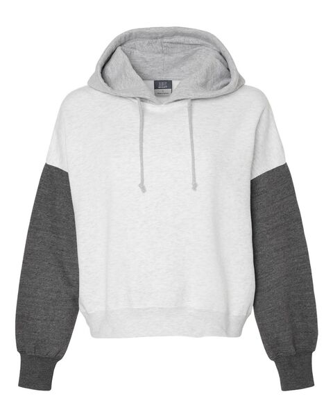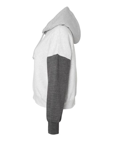 Women's Sueded Fleece Colorblocked Crop Hooded Sweatshirt
