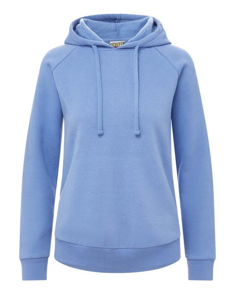 7 oz./yd_, 65/35 cotton/polyester Tunic fit Super soft sueded fleece Curved high-low hem with side slit details Hood with matching drawcord