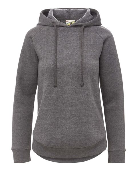 7 oz./yd_, 65/35 cotton/polyester Tunic fit Super soft sueded fleece Curved high-low hem with side slit details Hood with matching drawcord