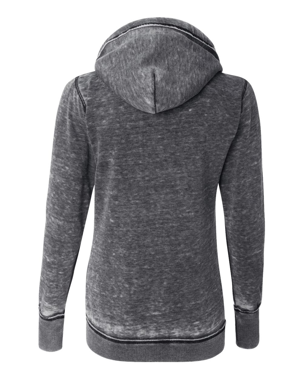 • Raw-edge hood opening, pocket seams, cuffs, waistband, zipper placket and side seams