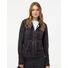 - Raw-edge hood opening, pocket seams, cuffs, waistband, zipper placket and side seams