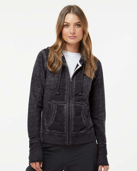 - Raw-edge hood opening, pocket seams, cuffs, waistband, zipper placket and side seams