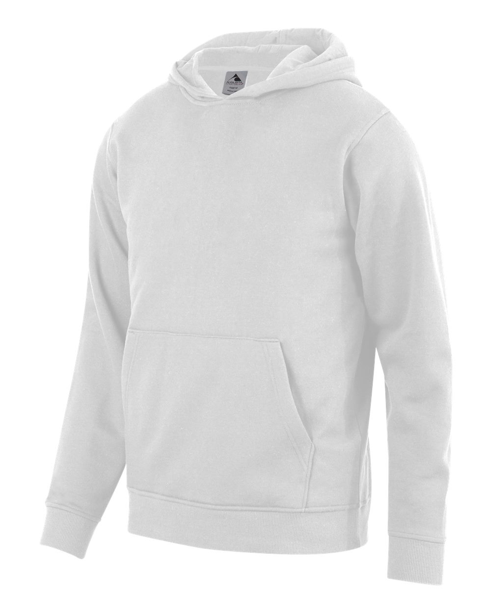 9 oz./yd_, 60/40 cotton/polyester athletic fleece Jersey lined hood No drawcord Set-in sleeves Pouch pocket Rib-knit cuffs and bottom band Tear away...