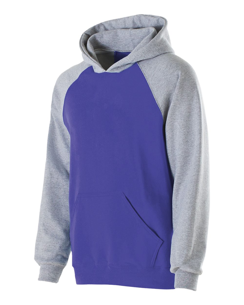 9 oz./yd_., 50/50 polyester/cotton fleece Adjustable drawcord hood that is fully lined Raglan sleeves Front pouch pocket Rib-trim cuffs and bottom hem