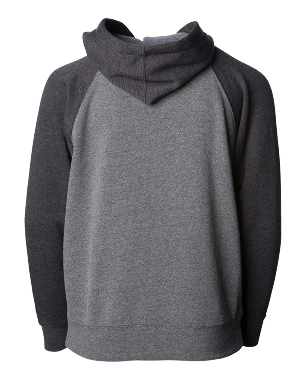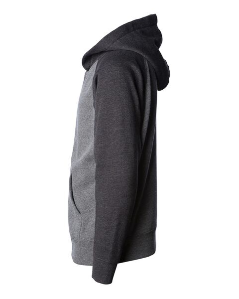 6.5 oz./yd_, 52/48 ring-spun cotton/polyester blend, 32 singles Raglan sleeves Unlined hood Reverse coverstitch sewing Twill neck tape 1x1 ribbing at...