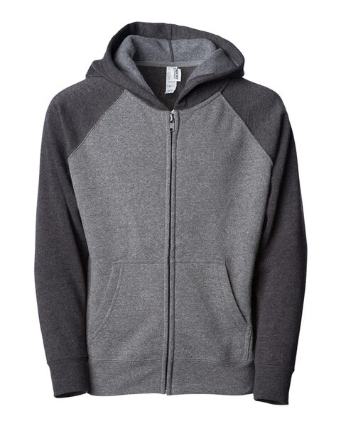 6.5 oz./yd_, 52/48 ring-spun cotton/polyester blend, 32 singles Raglan sleeves Unlined hood Reverse coverstitch sewing Twill neck tape 1x1 ribbing at...
