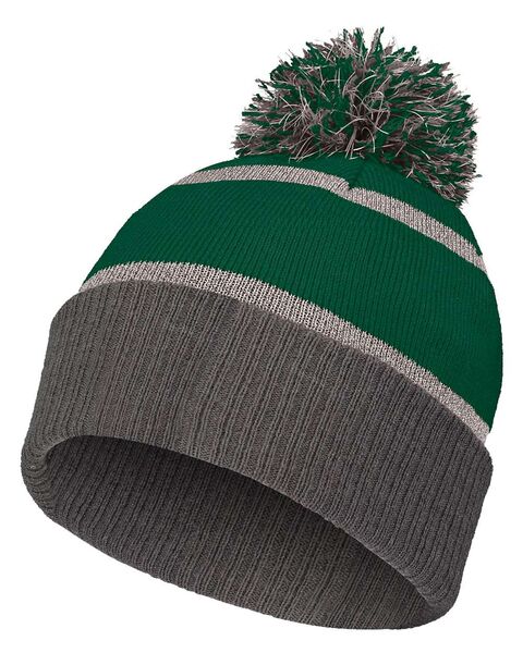 100% acrylic knit Foldover cuff Two-color pom pom accent with reflective yarns Two reflective stripes