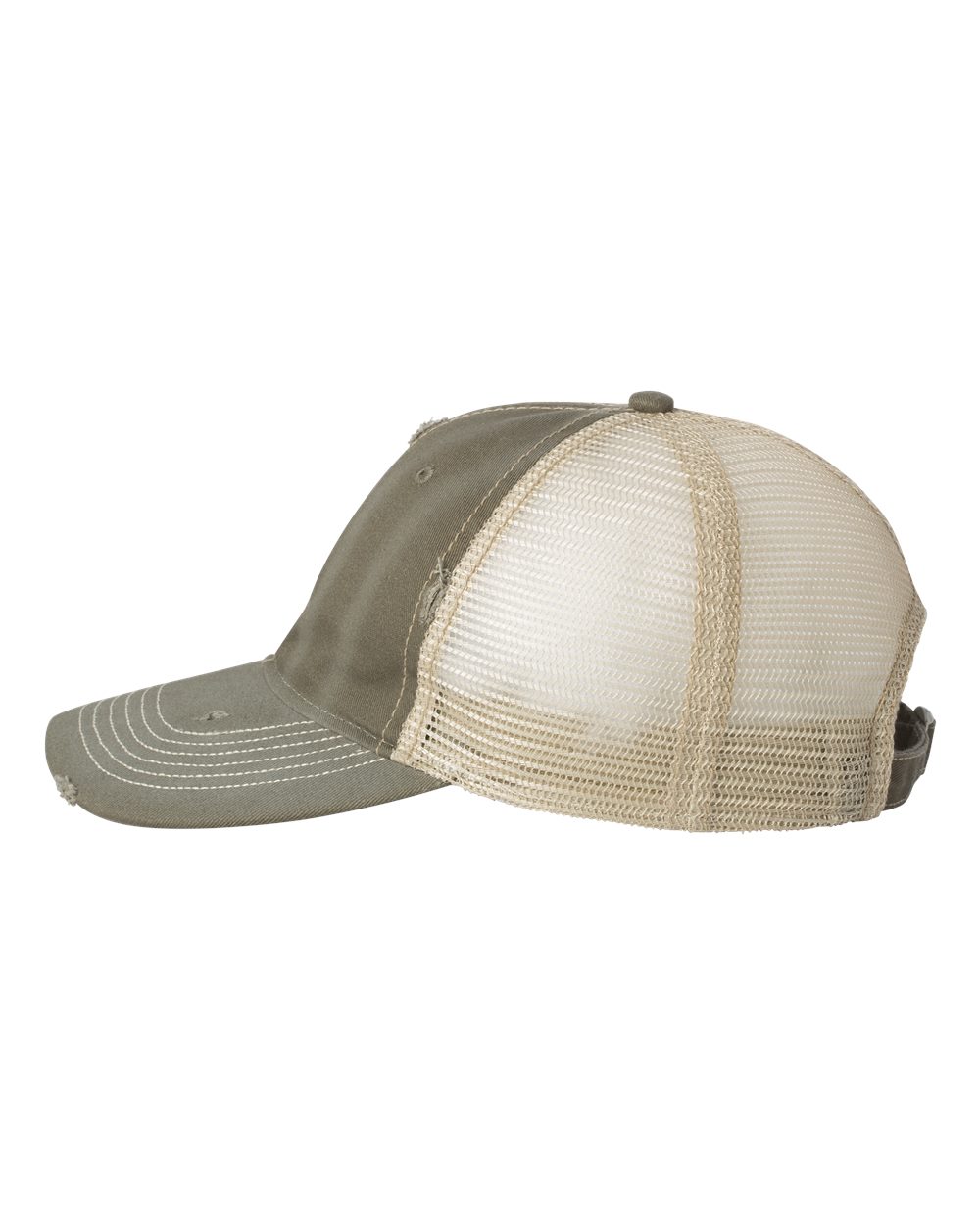 - Dirty bio-washed twill front, washed mesh back