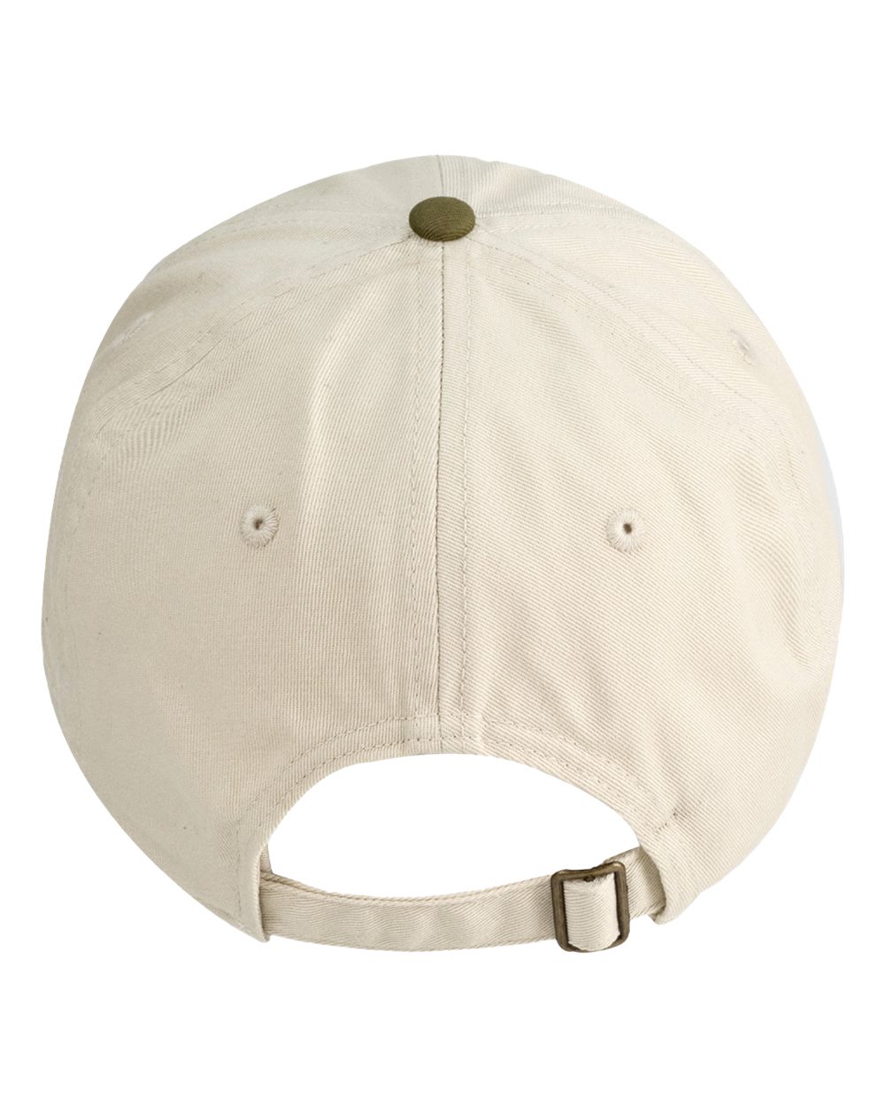 8 oz./yd_, 100% organic cotton, washed twill (exclusive of trims) Unstructured, six-panel Matching sewn eyelets Self-fabric closure with brass slider...