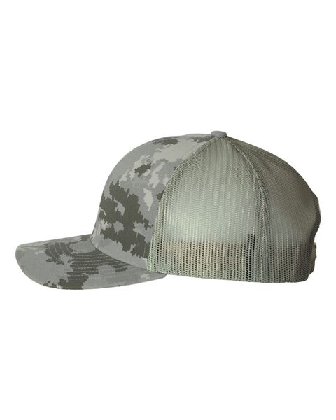 100% polyester, twill Green Camo & Desert Camo are 97/3 cotton/ PU spandex, 100% polyester mesh back Structured, six-panel, mid pro profile...
