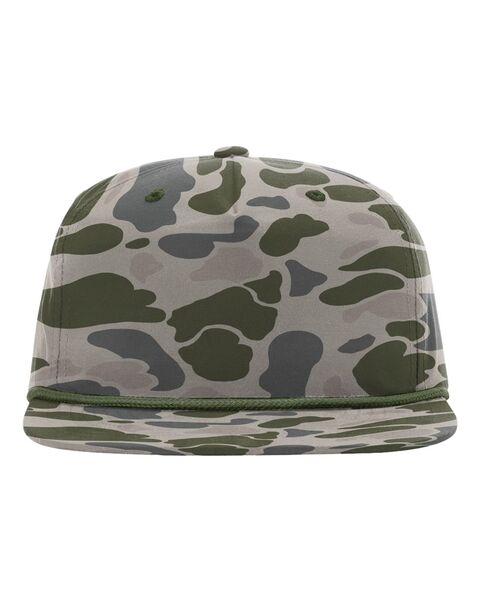 - Five-panel, Hi-pro crown with rope braid