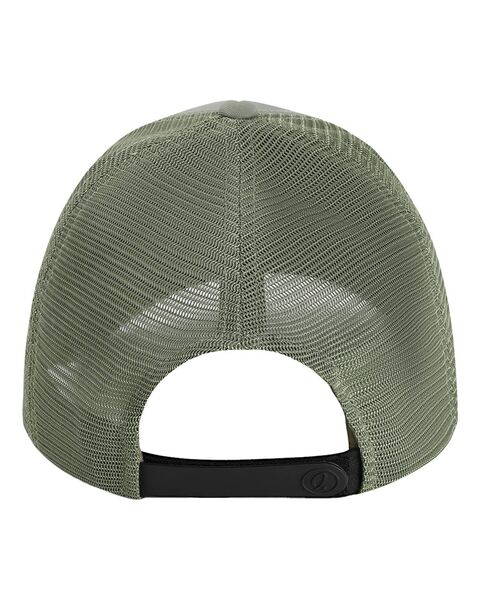 100% polyester, super soft-washed Structured, six-panel, mid-profile Pre-curved bill Imperial woven label by Black rubberized hook-and-loop closure