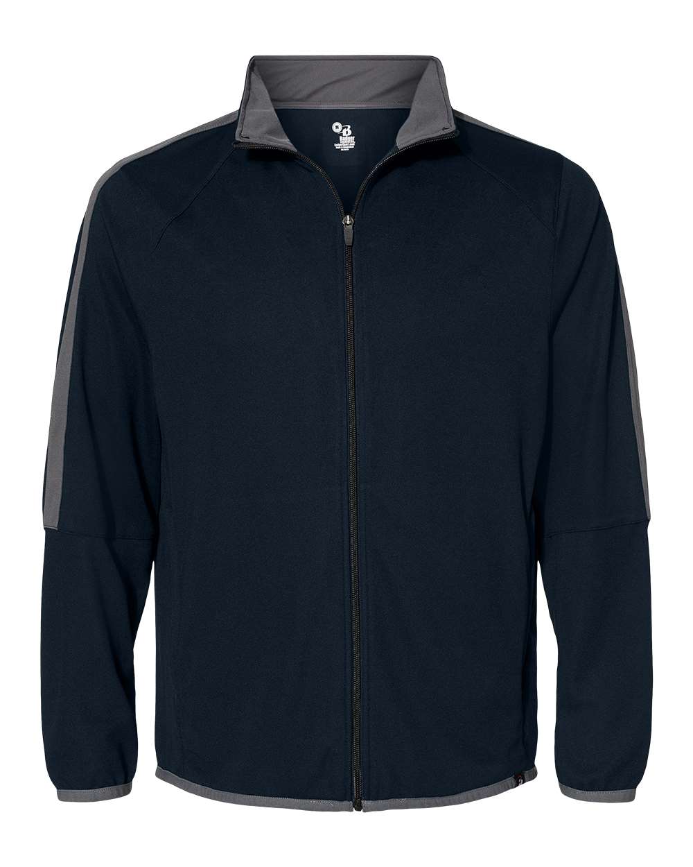 5 oz./yd_, 100% polyester fabric Contrasting inside collar, shoulder and sleeve inserts Badger sport shoulder for maximum movement Self-fabric collar...