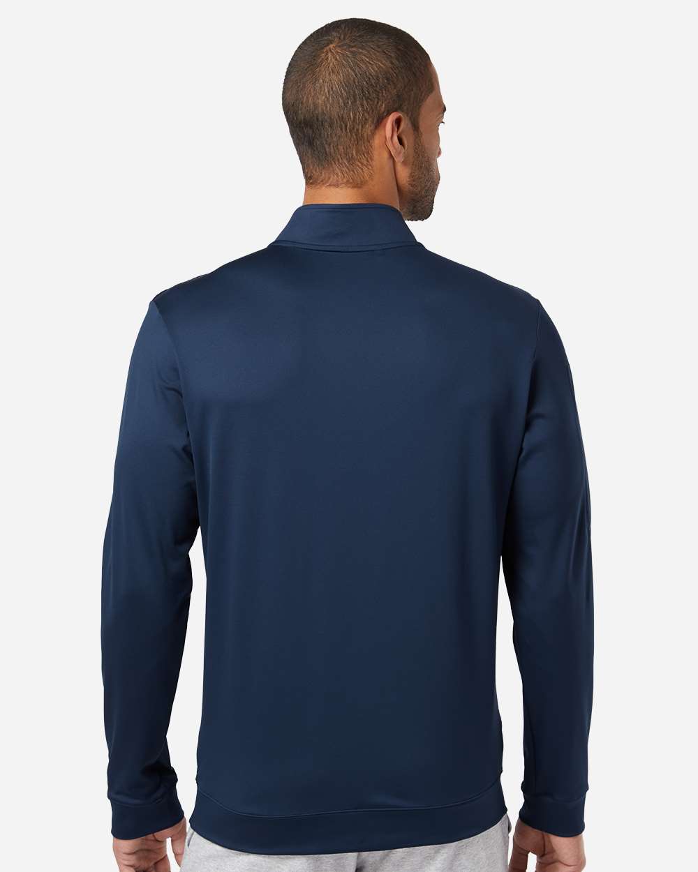 8.1 oz./yd_ (US), 13.5 oz/L yd (CA), 91/9 recycled polyester/elastane interlock Hydrophilic finish Self-mock collar, cuffs, and bottom hem Textured...